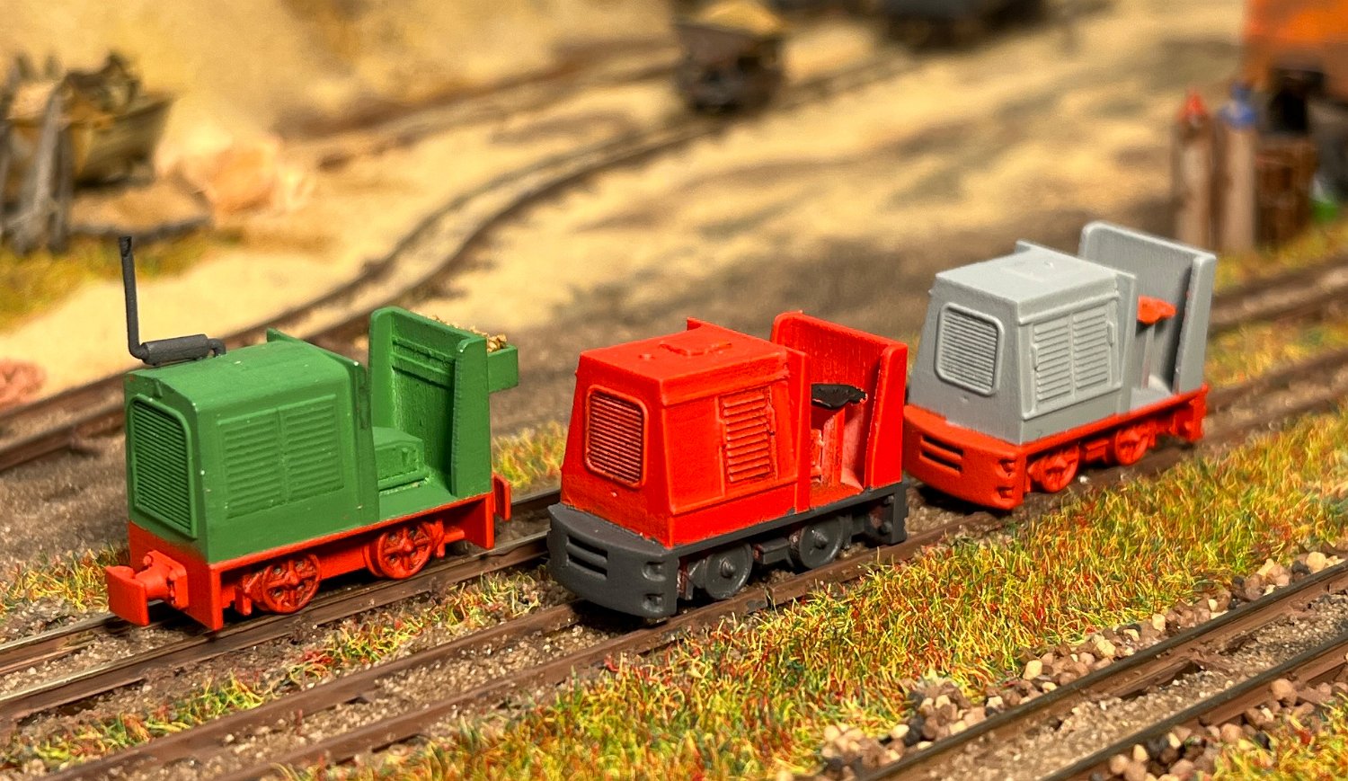NEU 122 3x HF50B vorn das Original nach Windhoff-Maßbild, Mitte von der Lommedalsbanan Norwegen, links von den Vereinigten Thüringer Schiefergruben Lehesten. |