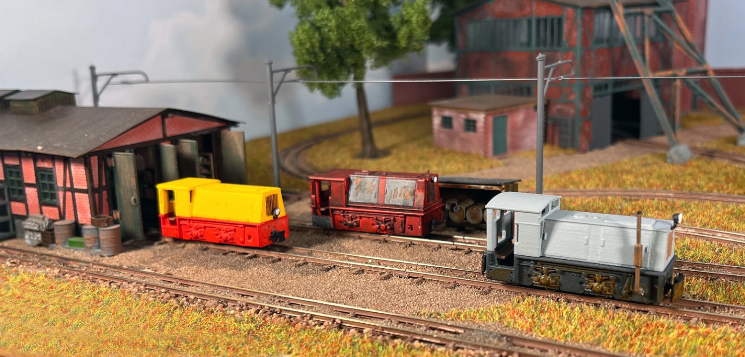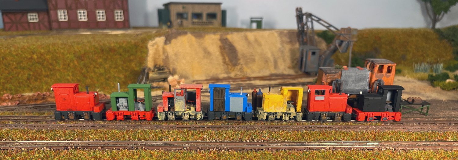 NEU 162 2x BND30 vom Dachziegelwerk Sömmerda, dahinter Varianten der ursprünglichen Grubenlok. |