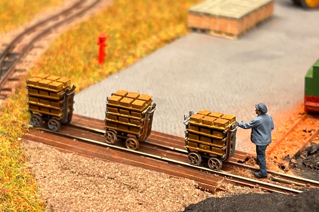 82 Die Torfwagen erhalten noch ihr Ladegut und werden farblich weiter behandelt. |